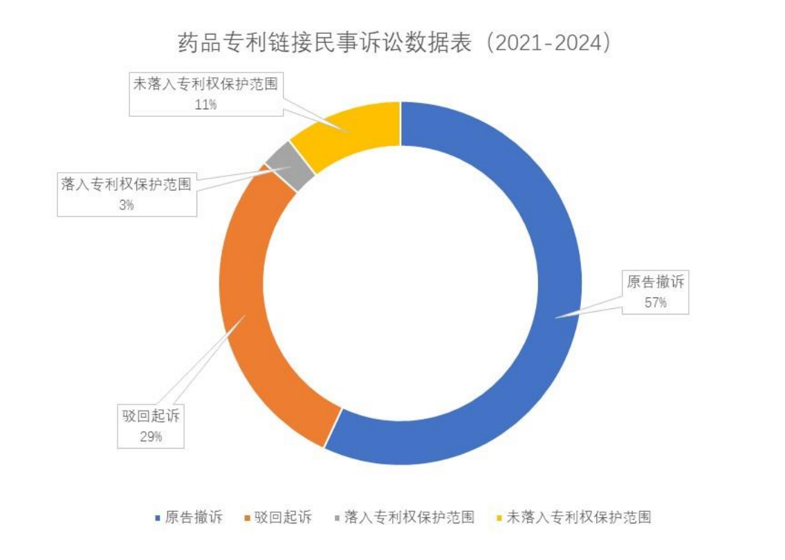 截至同日,裁判文书网及主要法律数据库共公开了50份与药品专利链接相关的民事裁判文书,其中一审案件32件,二审案件18件。约54%的案件中,原告在诉讼过程中主动撤诉,剩余案件中14件被驳回起诉,仅9件案件进入实体审理并最终获得法院判决。